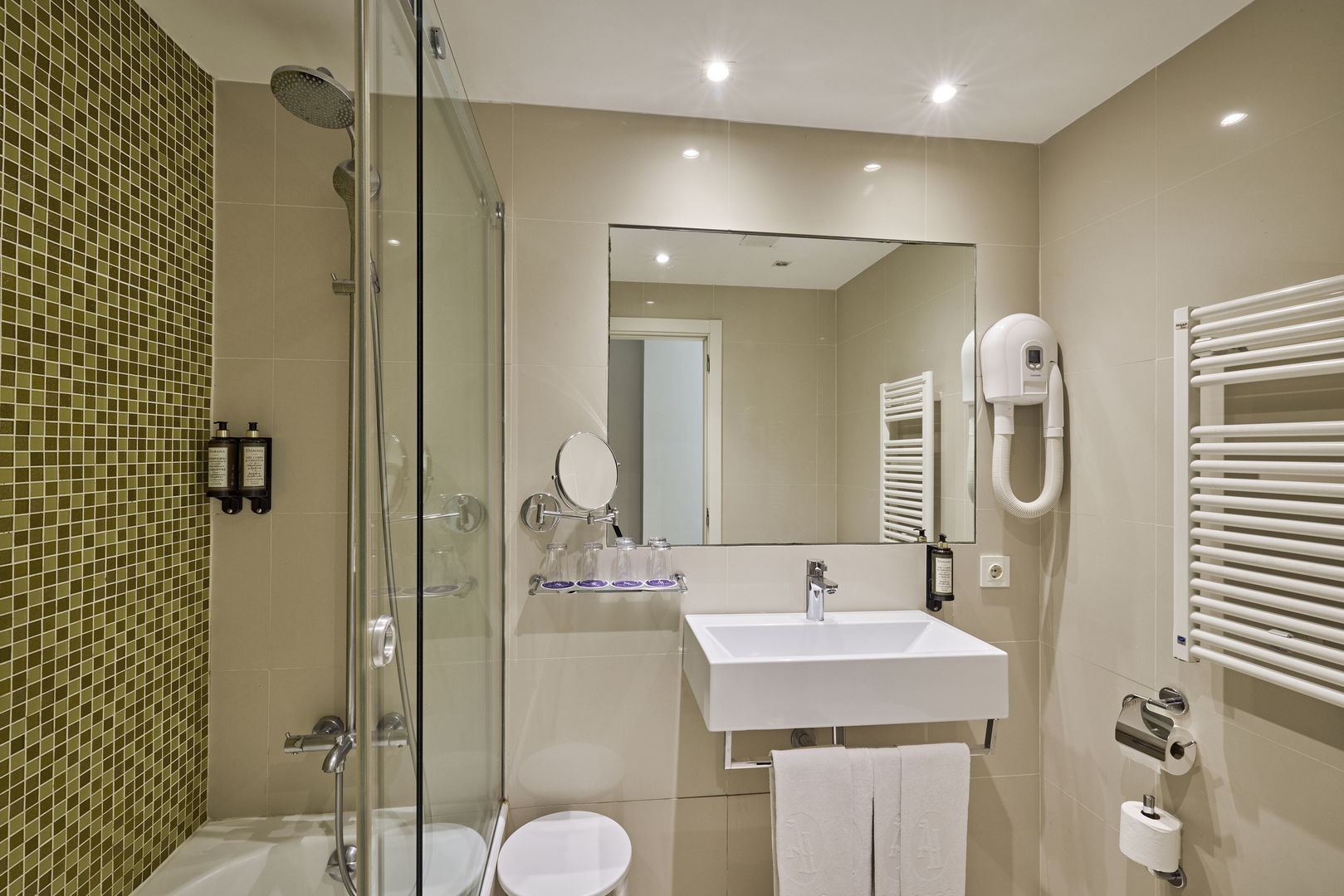 Habitación que consta de 4 camas individuales situada en la planta baja del hotel.